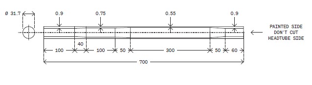 Tube double-usage (supérieur ou diagonal) Deda Zero-Uno 31.7mm, .9/.75/.55/.9 x 700mm. Peut être utilisé en tube diagonal, ou en le raccourcissant en tube supérieur.
