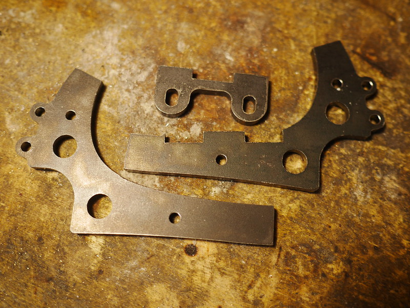 Pattes modulaires découpées au laser puis usinées dans de l’acier S355 de 5mm.