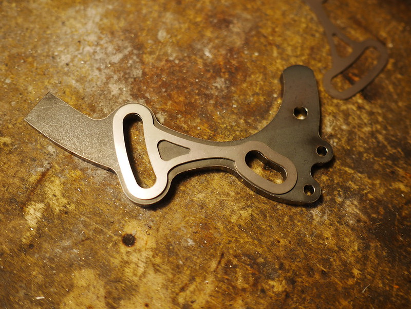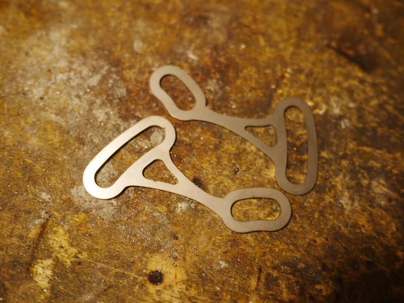 Paire de plaquettes en inox à braser pour enjoliver les pattes arrières basculantes. Inox 1mm découpé laser.